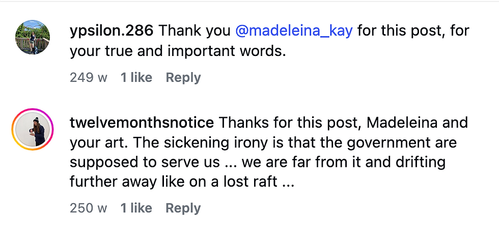 So whilst sourcing the materials (fabric, ribbon and paint) I want to create the "Love Dress", I have also been gathering the positive comments I intend to write onto the dress from my social media accounts: